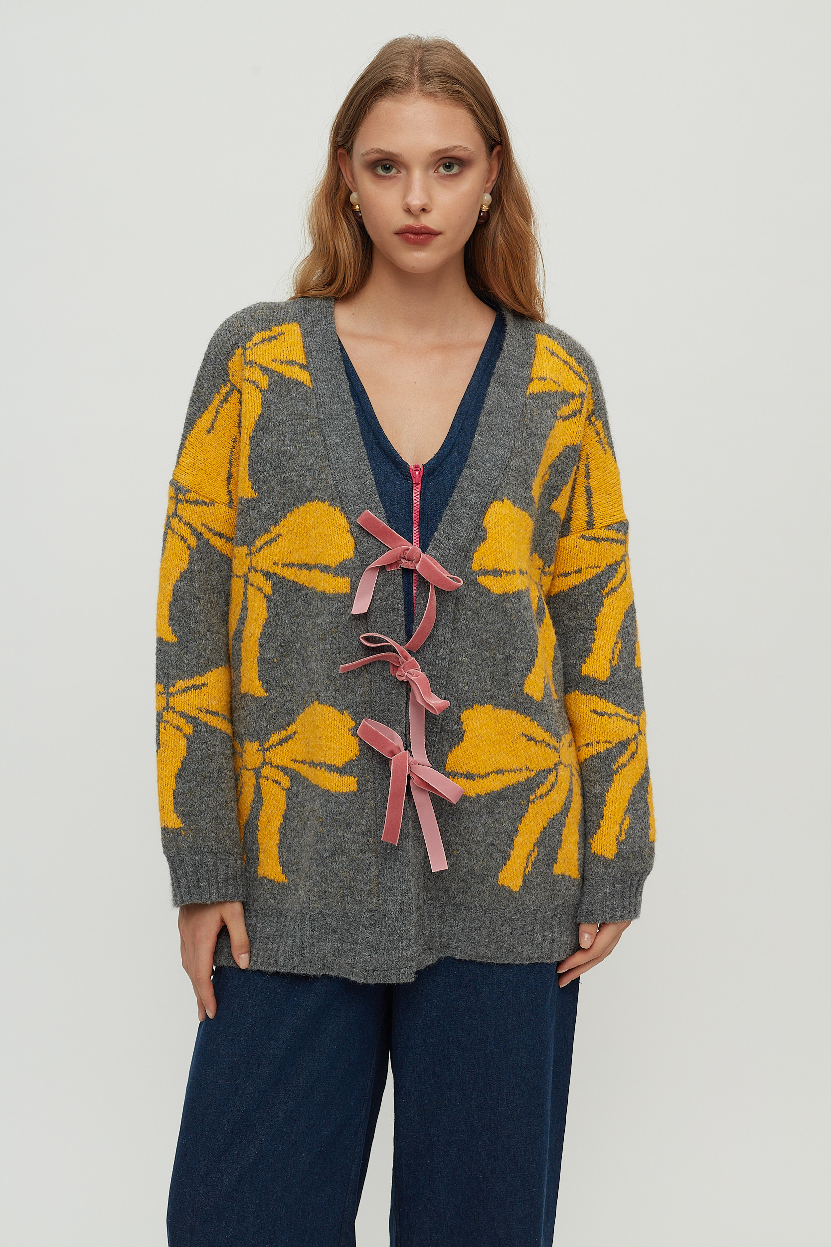 Soft bows-long cardigan